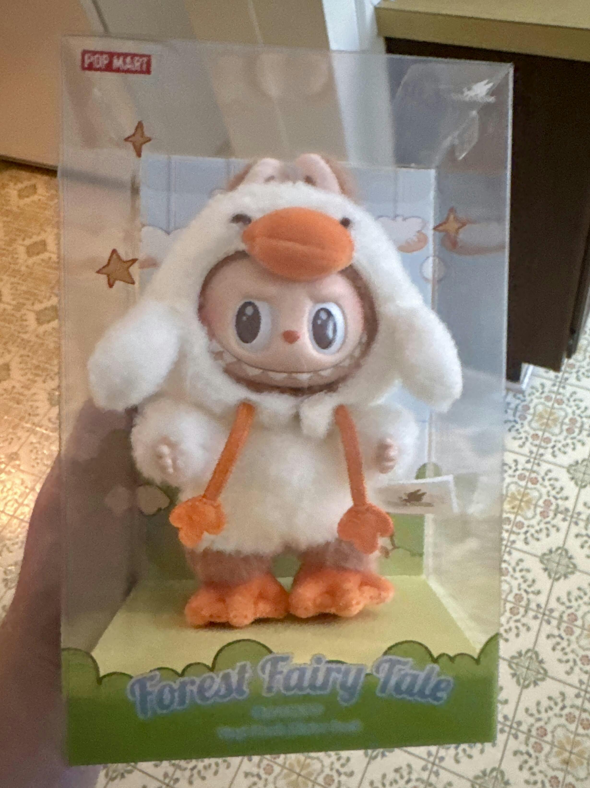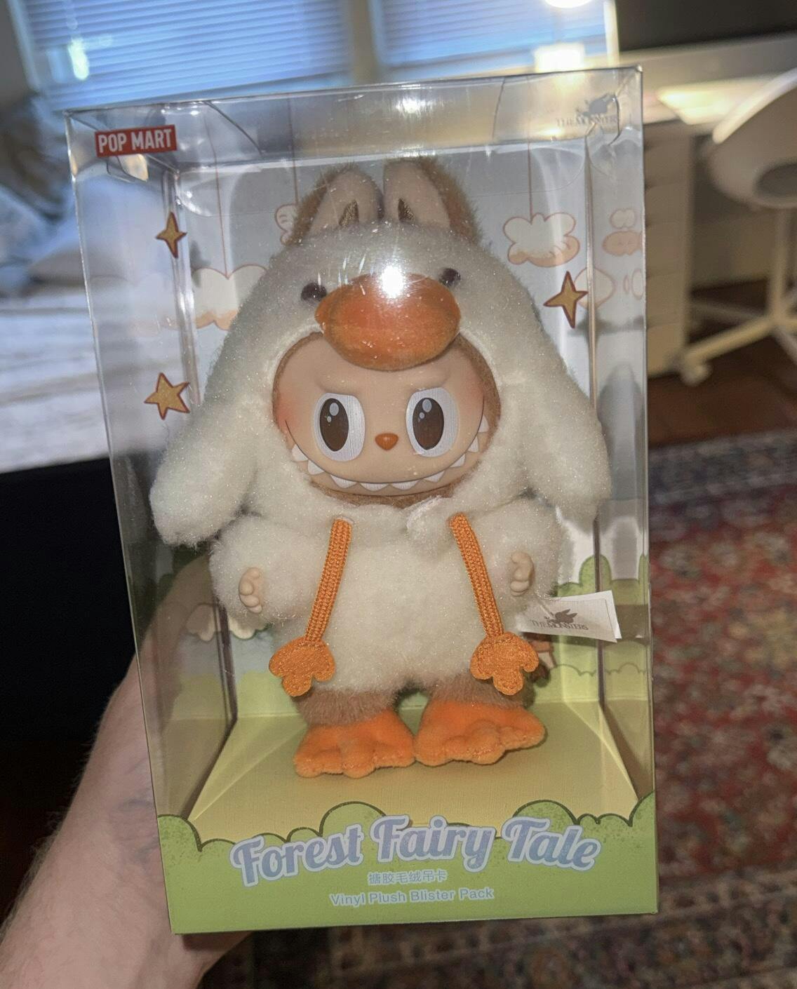 Expertly crafted Labubu the Monster Forest Fairy Tale Series vinyl plush hanging card, available exclusively as a pre-order. This collector's item is only obtainable in China through a point redemption system. Secure yours now to add this rare piece to your Labubu collection before international availability ends.